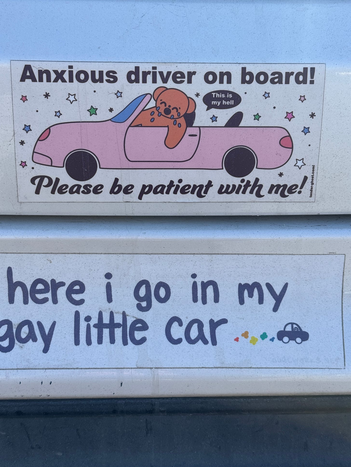 Last week, I drove to Kansas City to teach my 4:00 class before realizing I’d left my laptop in St. Louis. Looking at what the week had in store, and knowing that my partner’s car gets 60 miles on a charge if the weather is cooperating, I had no choice but to turn around and go right back (and then go right back again in the morning), twelve hours of driving over two days. When I did get back, I found out that the noise in my car that I definitely should have looked into before now was the result of two loose tire bearings, threatening a major disaster for more than a year.